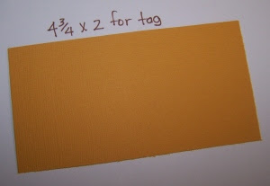 6.While you are waiting for this to set, you can make the tag that you can slip into the opening. Cut a piece of 4 3/4 in. x 2 in. piece of coordinating cardstock or patterned paper. Trim one side to make it look like a tag and punch a hole in it to place a piece of ribbon on the tag. Add the gift card to the tag now.