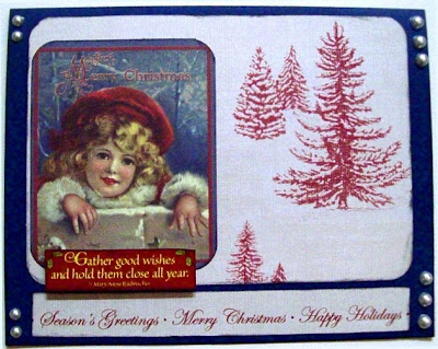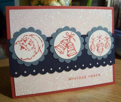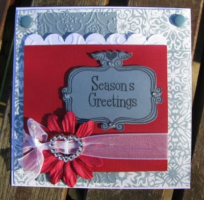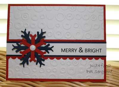 The challenge for this month is to create a Christmas card using the colors RED, WHITE and BLUE!!!!!