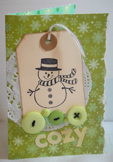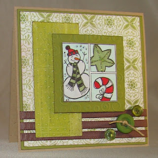 The challenge for the month of March is to use mostly green on your card and one of my favorties...snowmen!