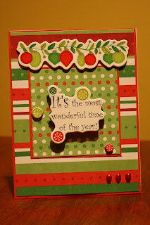 My name is Trish Hughes. I love being a mother to twin boys and a wife. While I enjoy making cards and scrapbooking for every occasion, I truly love creating Christmas projects. Which just happens to be my favorite time of year. And here is her card...