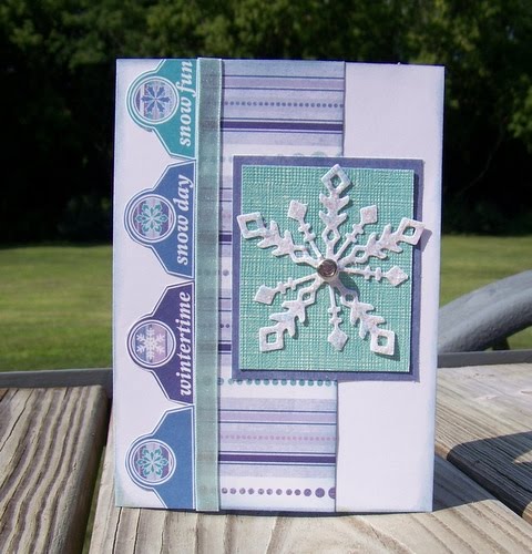Here's our challenge for August.... Since many of us have had a lot of heat this summer, we're going to cool things down with SNOWFLAKES! Yes, as some of you guessed from the sneaks, your cards this month need to have snowflakes of some kind - in the paper, embellishments, stamping or whatever you like!